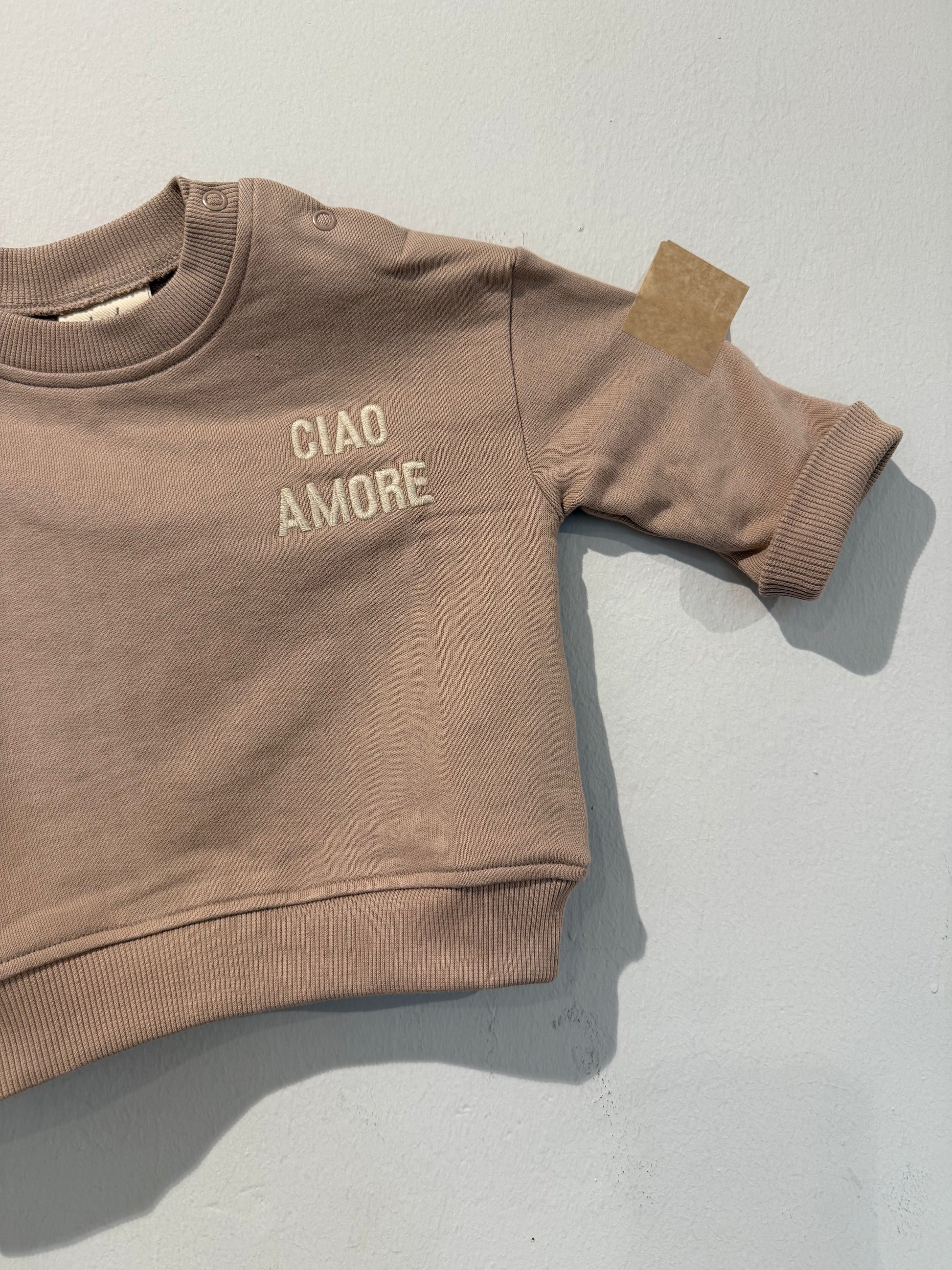 Super weiches Sweatshirt mit CIAO AMORE Bedruckung am Rücken und die Bestückung vorne an der Brust.